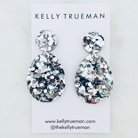 Small Semi Drop Earrings - Black & White